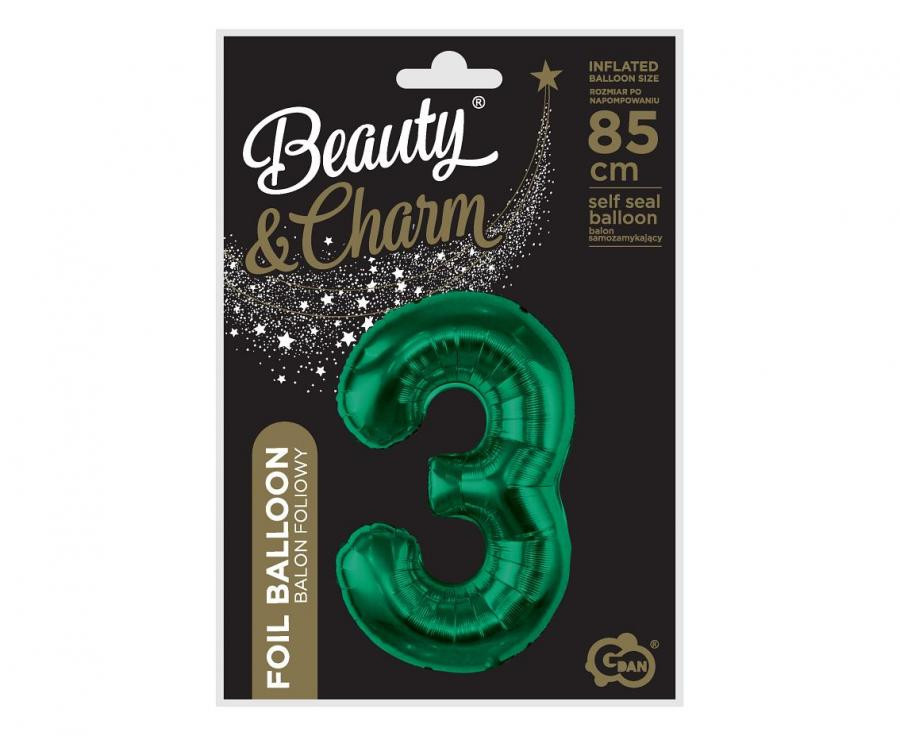 Zöld B&C Bottle Green 3-as szám fólia lufi 85 cm