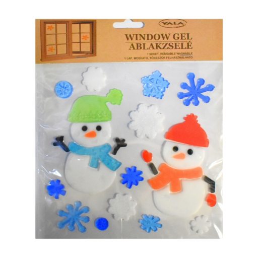 Zselés ablakdísz (hóember zöld és piros sapkában)