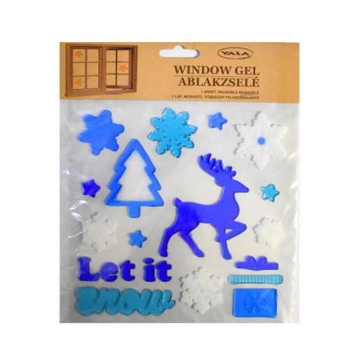 Zselés ablakdísz (kék szarvas let it snow felirattal)