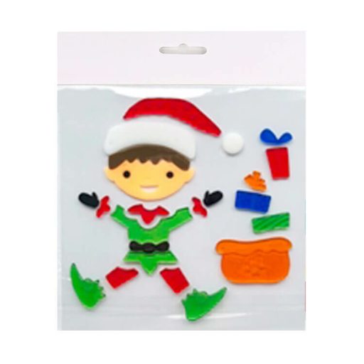 Zselés ablakdísz (manó ajándékokkal mikulás sapkában)