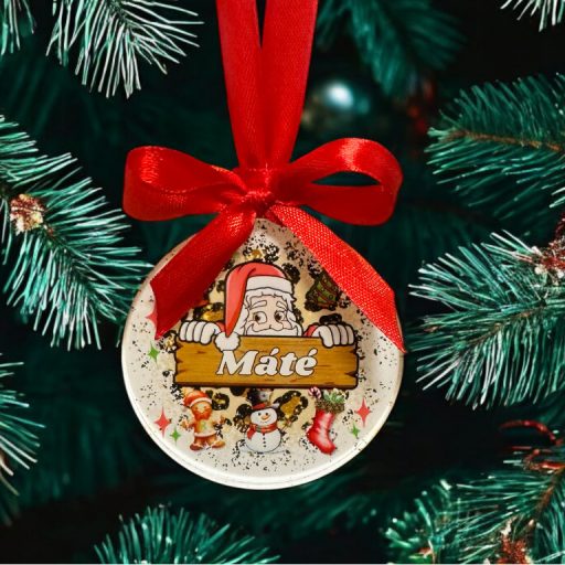Egyedi névre szóló dísz. Kerek forma, átmérő 6,5cm vastagság 0,5cm