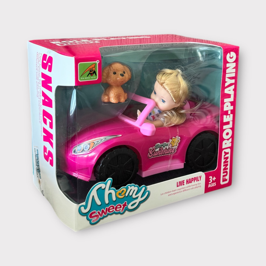 Ez a bájos játékbaba szett kiskutyával és autóval garantáltan a kislányok kedvence lesz!