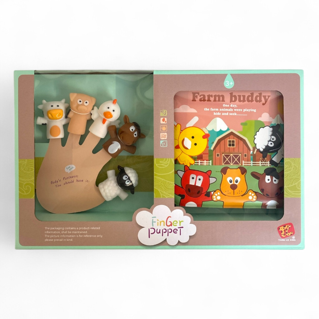 Farmos játékszett – állatos ujjbábokkal és babakönyvvel