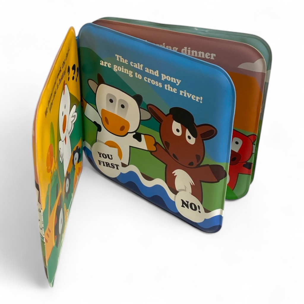 A csomag egy puha, színes farmos babakönyvet és aranyos állatos ujjbábokat tartalmaz, amelyekkel játék közben mesélhetsz, taníthatsz és szórakoztathatod gyermekedet.