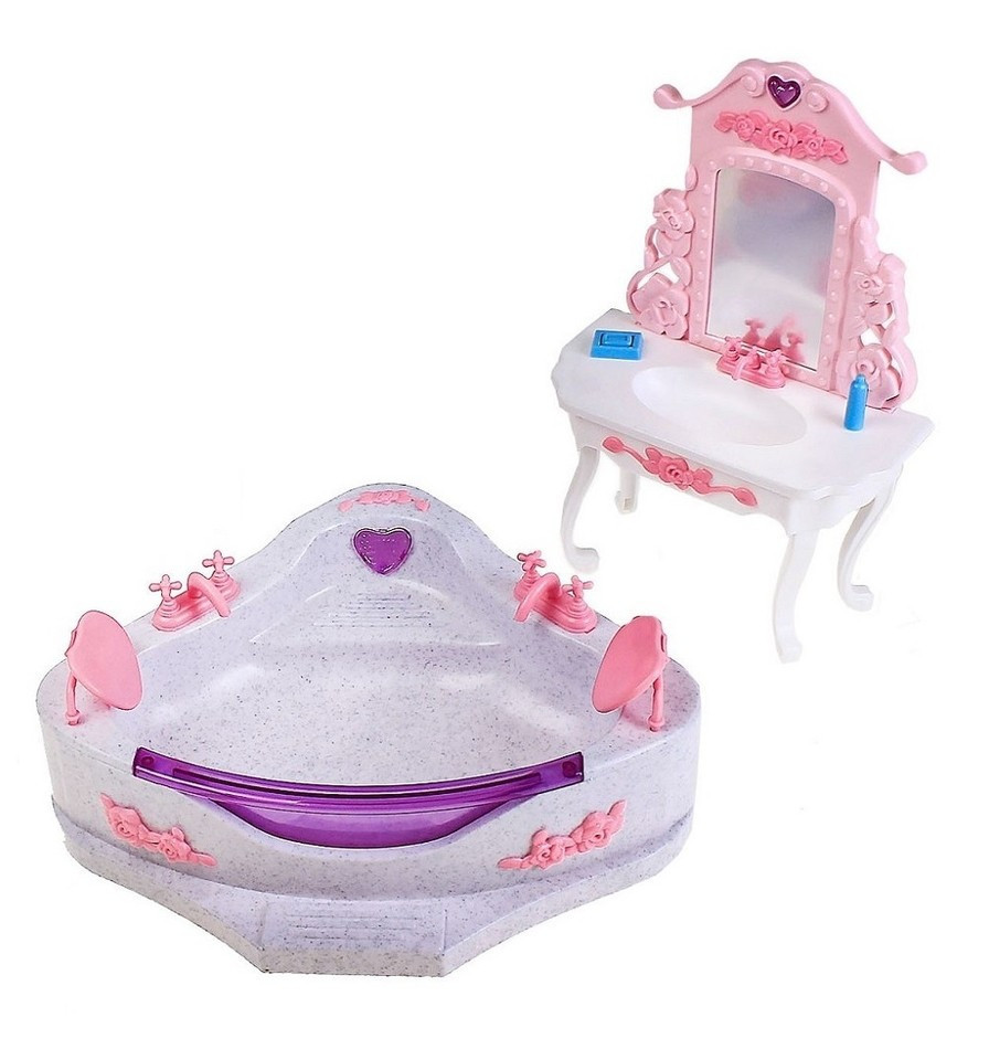 Fürdőszoba berendezés Barbie méretű babákhoz.