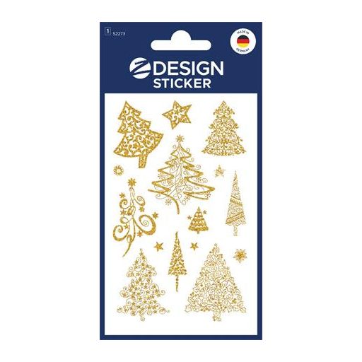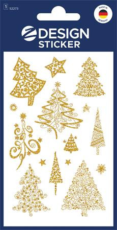 Matrica, papír, 1 ív, 76x120 mm, AVERY ZWECKFORM, "Z-Design No.52273", arany fenyőfák