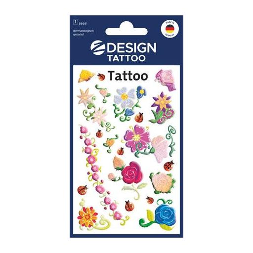 Matrica, tetoválás, 1 ív, 76x120 mm, AVERY ZWECKFORM, "Z-Design No.56691", színes virágok