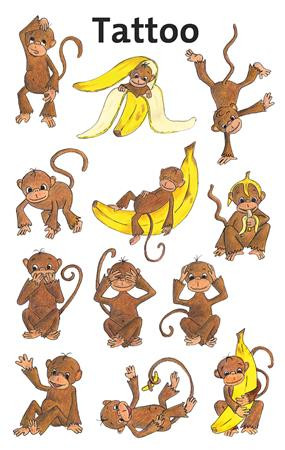 Hová tűnt az összes banán? Pimasz tetoválások, pimasz gyerekeknek! Válaszd ki a kedvenc majmos tetoválásod! Lepje meg gyermekeit fantasztikus tetoválásokkal, amelyek tökéletesek ajándékként, jutalomként, születésnapi partikhoz vagy egyszerűen csak játékként.