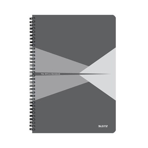 Spirálfüzet, A4, vonalas, 90 lap, laminált karton borító, LEITZ "Office", szürke