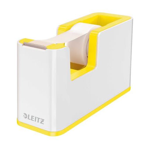 Ragasztószalag-adagoló, asztali, feltöltött, LEITZ "Wow", fehér-sárga