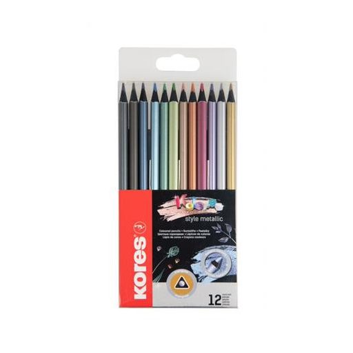 Színes ceruza készlet, háromszögletű, KORES "Kolores Style Metallic", 12 metál szín