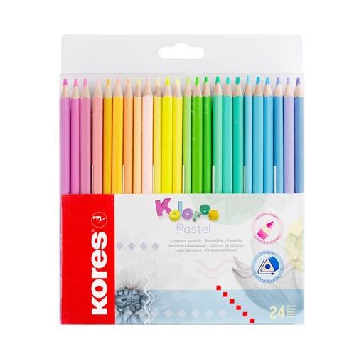 Színes ceruza készlet, háromszögletű, KORES "Kolores Pastel", 24 pasztell szín