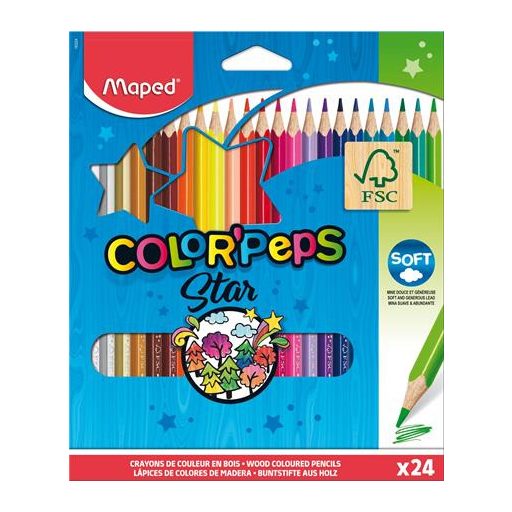 Színes ceruza készlet, háromszögletű, MAPED "Color`Peps Star", 24 különböző szín