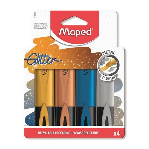 Szövegkiemelő készlet, 1-5 mm, MAPED "Glitter Fluo Peps", 4 különböző metálfényű szín