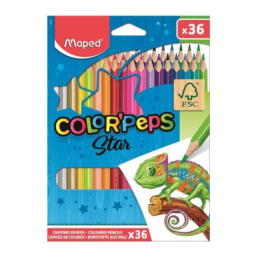 Színes ceruza készlet, háromszögletű, MAPED "Color`Peps Star", 36 különböző szín
