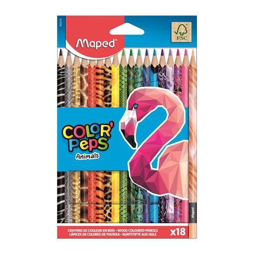 Színes ceruza készlet, háromszögletű, MAPED "Color`Peps Animal", 18 különböző szín