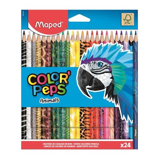 Színes ceruza készlet, háromszögletű, MAPED "Color`Peps Animal", 24 különböző szín