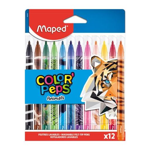 Filctoll készlet, 2,8 mm, kimosható, MAPED "Color`Peps Animals", 12 különböző szín