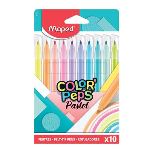 Filctoll készlet, 2,8 mm, kimosható, MAPED "Color`Peps Pastel", 10 különböző pasztell szín