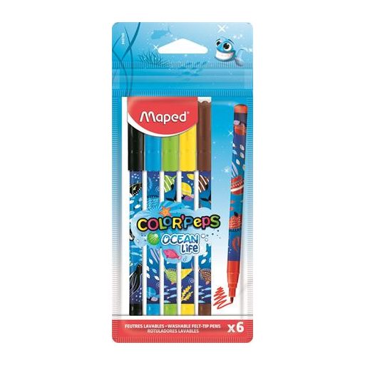 Filctoll készlet, 2 mm, kimosható, MAPED "Color'Peps Ocean Life", 6 különböző szín