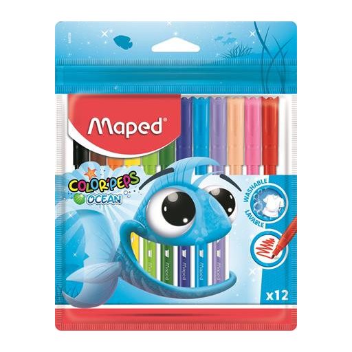 Filctoll készlet, 2 mm, kimosható, MAPED "Color'Peps Ocean", 12 különböző szín