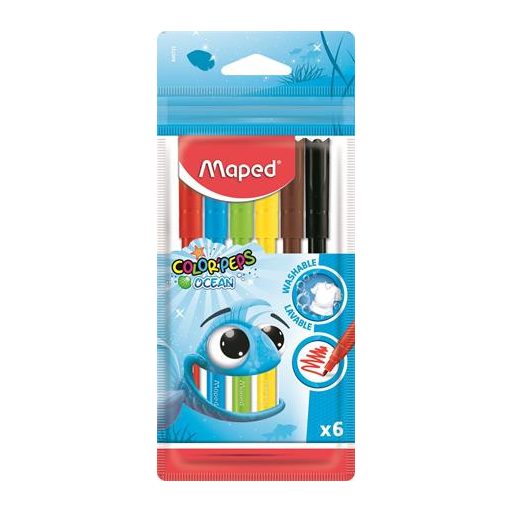 Filctoll készlet, 2 mm, kimosható, MAPED "Color'Peps Ocean", 6 különböző szín