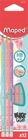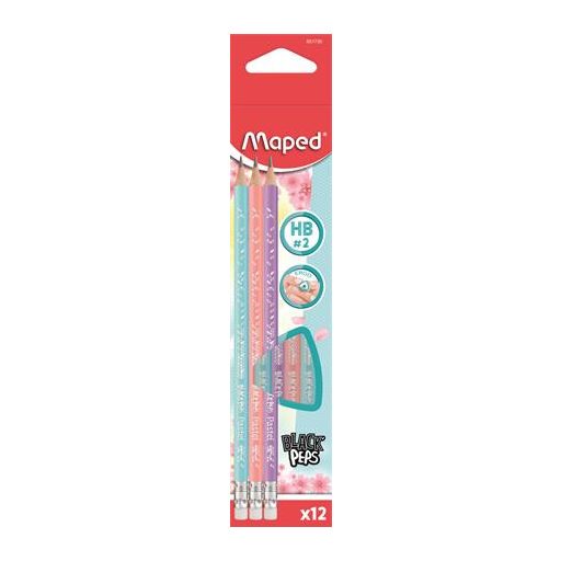 Grafitceruza radírral, HB, háromszögletű, MAPED "Black`Peps Pastel", vegyes pasztell színek