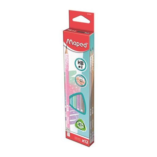 Grafitceruza radírral, HB, háromszögletű, MAPED "Black`Peps Glitter Deco", vegyes pasztell színek