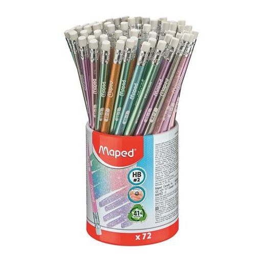 Grafitceruza radírral, ceruzatartó, HB, háromszögletű, MAPED "Black'Peps Glitter Deco", vegyes pasztell színek