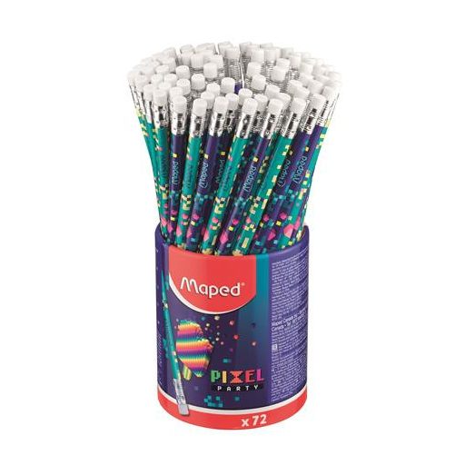 Grafitceruza radírral, ceruzatartó, HB, háromszögletű, MAPED "Pixel Party", 72 darab
