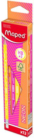 Grafitceruza radírral, HB, háromszögletű, MAPED "Black`Peps Neon", vegyes színek