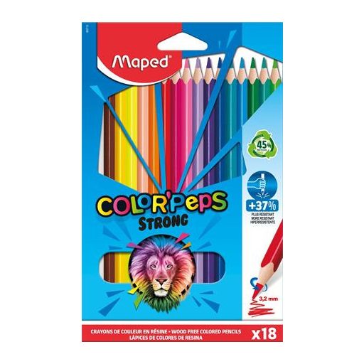 Színes ceruza készlet, háromszögletű, MAPED "Color`Peps Strong", 18 különböző szín