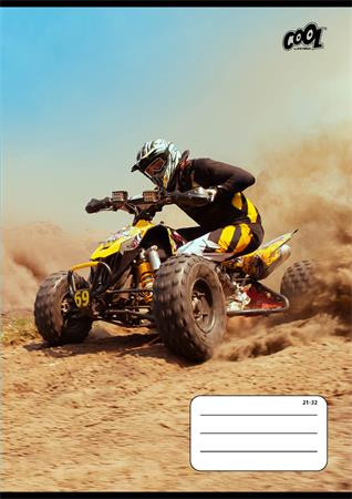 Füzet, tűzött, A5, vonalas, 32 lap, 4-8. osztály, COOL BY VICTORIA "Motocross", "21-32"