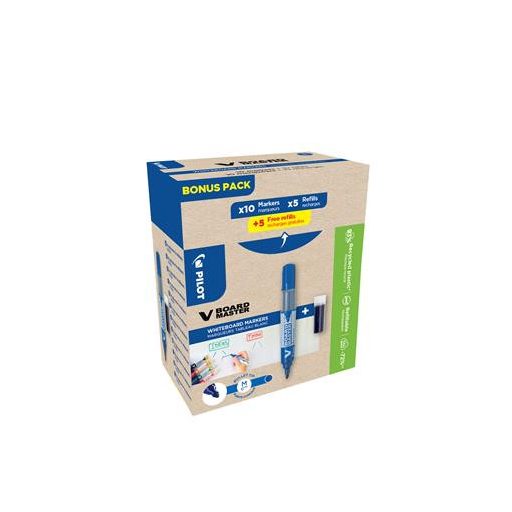 Táblamarker, 2,3 mm, kúpos, PILOT "V-Board Master, Bonus Pack", kék + betét