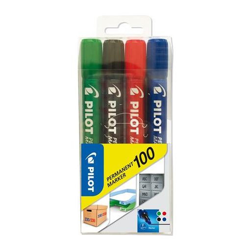 Alkoholos marker, 1 mm, kúpos, PILOT "Permanent Marker 100", 4 szín