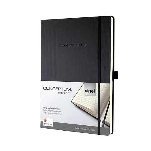 A keményfedeles "Conceptum", jegyzetfüzeteket sajátossága a klasszikus fekete, egyben modern megjelenésű "Softwave" borító. A sima, vonalas vagy kockás lapok között mindenki megtalálja a hozzá illőt. Praktikus tablet formátumban (180x240 mm) is elérhető. gumiszalagos záródás oldalán tolltartóval belül sarokzseb és archiválózseb névjegykártyatartóval dupla jelölőszalag és oldalszámozás hátulján tartalomjegyzék 194 oldal 20 perforált lap 80 g/m2 Gyártó/első EU forgalmazó elérhetősége: SIGEL GmbH Baeumenheimer Strasse 10, 86690 Mertingen, Germany sandra.geist@sigel.de www.sigel-office.com