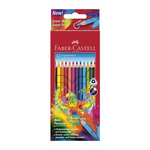 Színes ceruza készlet, háromszögletű, FABER-CASTELL "Papagáj", 12 különböző szín