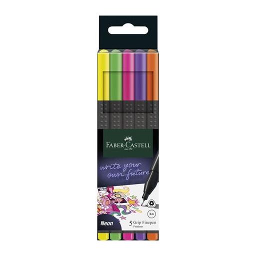 Tűfilc készlet, 0,4 mm, FABER-CASTELL "Grip", 5 különböző neon szín