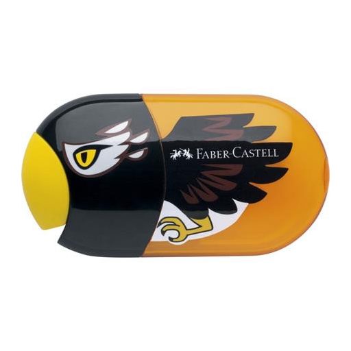 Hegyező és radír, kétlyukú, tartályos, FABER-CASTELL, sas minta