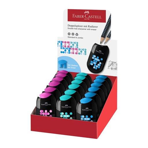 Hegyező display, kétlyukú, 2 tartályos, FABER-CASTELL, vegyes színek
