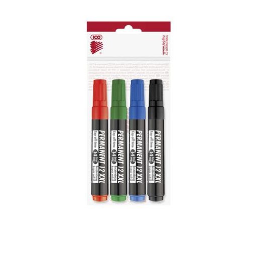 Alkoholos marker készlet, 1-4 mm, vágott, ICO "Permanent 12 XXL", 4 különböző szín