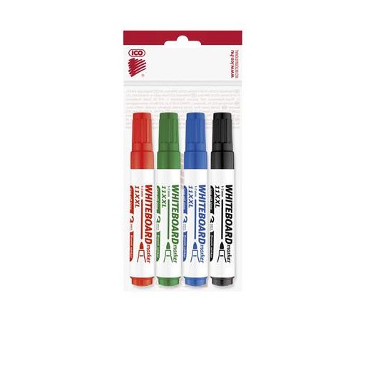Tábla- és flipchart marker készlet, 1-3 mm, kúpos, ICO "Plan 11 XXL", 4 különböző szín