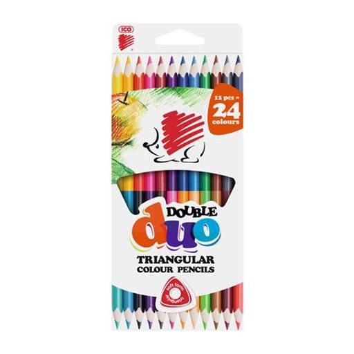 Színes ceruza készlet, kétvégű, háromszögletű, ICO "Süni", 24 különböző szín