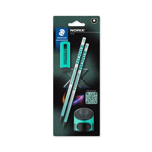 Grafitceruza készlet, hegyezővel, radírral, HB, STAEDTLER "Norix® 181", franciazöld