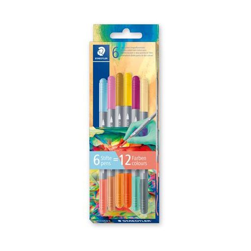 Filctoll készlet, 1/3 mm, kétvégű, kimosható, STAEDTLER® "3280", Multiverzum 2, 6 különböző szín