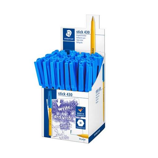 Golyóstoll, 0,3 mm, kupakos, STAEDTLER "Stick 430 F", kék