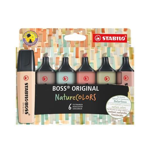 Szövegkiemelő készlet, 2-5 mm, STABILO "BOSS original NatureCOLORS", 6 különböző szín
