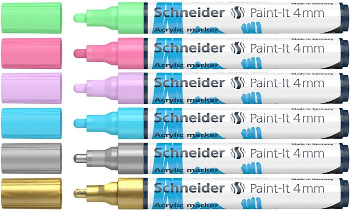 Dekormarker készlet, akril, 4 mm, SCHNEIDER "Paint-It 320", 6 különböző szín