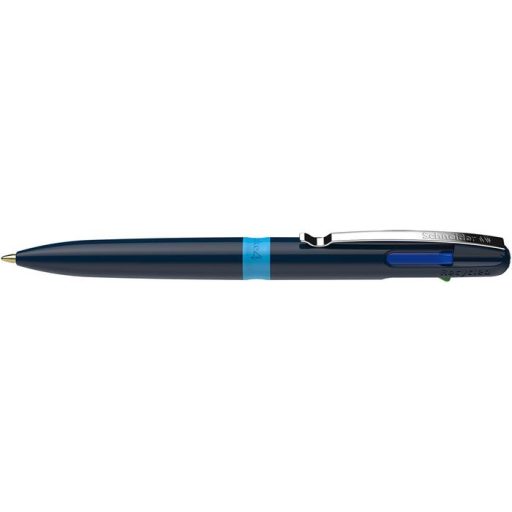 Golyóstoll, 0,5 mm, nyomógombos, négyszínű, SCHNEIDER "Take 4", sötétkék