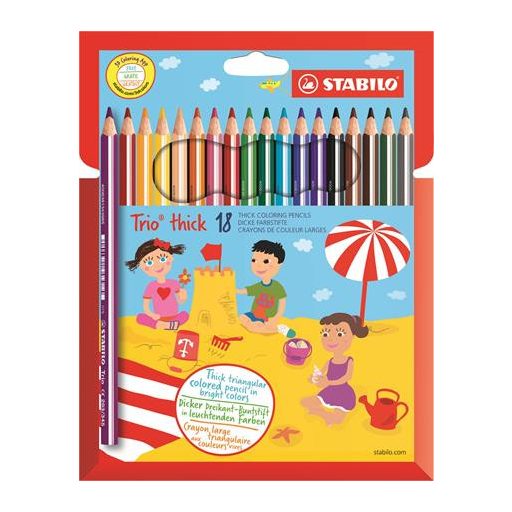 Színes ceruza készlet, háromszögletű, vastag, STABILO "Trio thick", 18 különböző szín